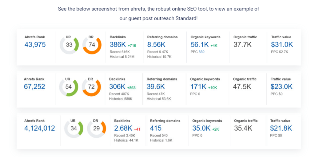 We’ve included a screenshot of Ahrefs rankings below to represent the success of the backlink campaigns we’ve completed for clients. We can provide you with these kinds of results thanks to our unique and complete methodology.